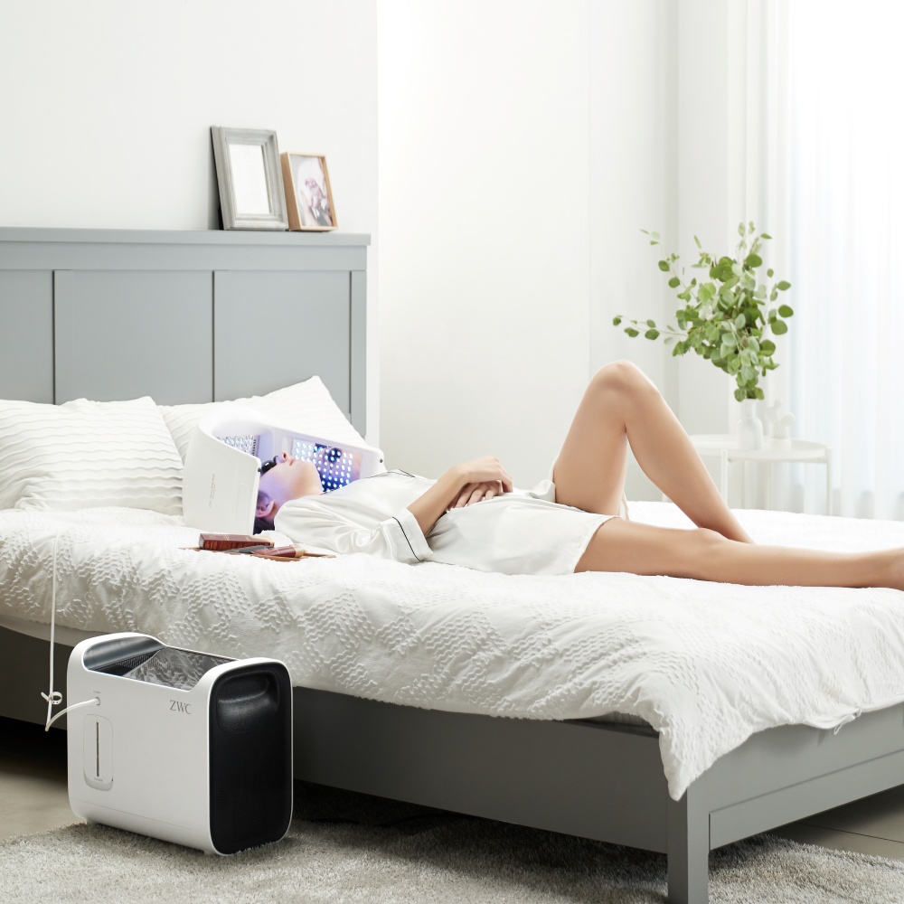 자이글온 Face&Bodymask O2 LED DOME 온가족 두피부터 발끝까지 전신 피부관리기의 가장 큰 장점은 바로 LED DOME 기술이에요. 얼굴 피부뿐 아니라 두피, 목, 팔, 다리까지 LED 빛을 쏘여 피부 재생과 혈액 순환을 도와주죠.